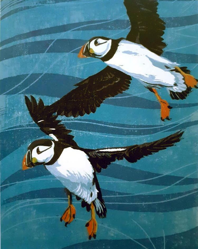 Reduction linocutting is one of the most complex and intriguing forms of relief printmaking - it requires having to work with a reversed sketch or drawing, being able to envisage multiple layers of tone and colour, all whilst working toward a final image which exists only in my head.